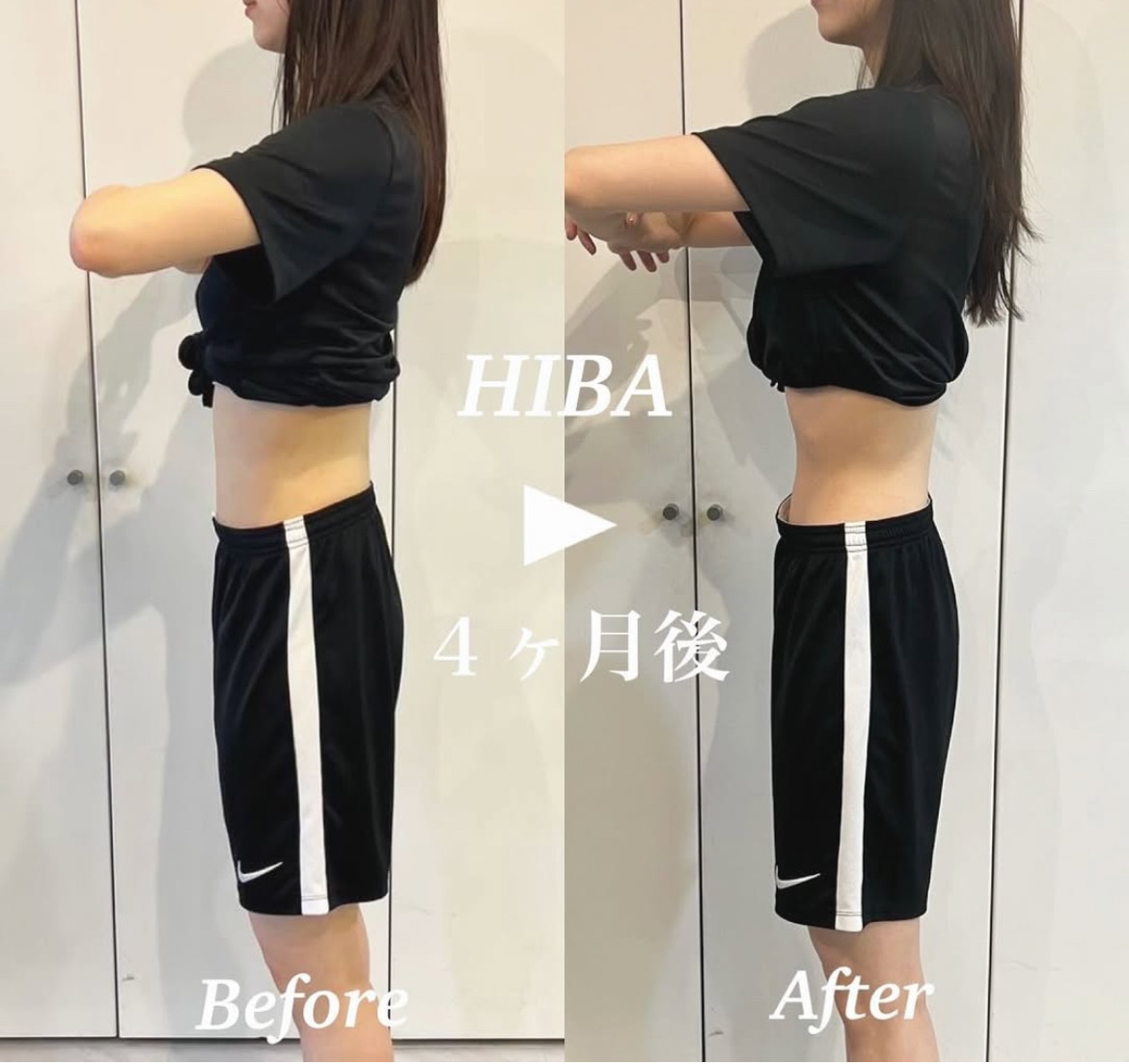日本に戻ってから、なつこさん(HIBAトレーナー)にトレーニングや食事の指導を受け、たった2ヶ月で4kg減。体脂肪が減り、筋肉が増えたので、身体が軽く日々の生活が楽しくなりました!